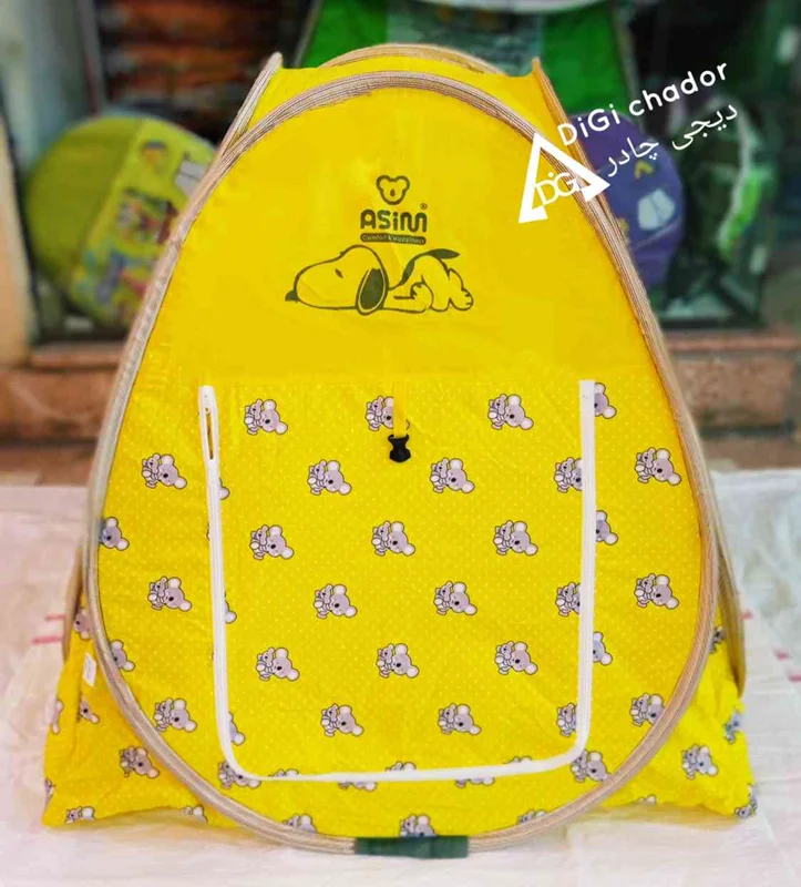 چادرهای بازی نوجوان صادراتی از جنس پارچه تترون درجه یک تولید میشود و با اسکلت فلزی فنری روکشدار که توسط نوار ابریشم تزئین شده به راحتی و در عرض چند ثانیه باز و بست میشود و به صورت گرد با قطر حدود 35 سانت در کیف مخصوص خود قرار میگیرد. لازم به ذکر است که در قسمت بالا و کف چادر از پارچه اسپاند باند ضد حساسیت با ضخامت مناسب بهره گرفته شده. چادرهای کودک تترون از رنگبندی شاد و متنوع با طرح فیلی و کوالا بهره میبرد که بین کودکان محبوب میباشد. چادرهای بازی بچه گانه تترون دیجی چادر هیچ نوع حساسیتی برای بچهها ایجاد نمیکند و به راحتی باز و بسته میشود.چادر یک در و یک پنجره مجهز به پشه بند دارد و میتواند نمادی از خانه برای کودکان باشد تا از داخل پنجره با بیرون ارتباط برقرار کنند، اسباببازیهایشان را بچیند و از در برای ورود و خروج استفاده کنند. بنابراین چنین فضایی این امکان را به بچهها میدهد که ایدههایشان را پیاده کنند و برای کودک شما حس استقلال را به وجود میآورد و در کنار دوستان خود میتوانند ساعتها در کلبه چادری مخصوص خود مشغول بازی و سرگرمی باشند.. چادرهای تترون در دو سایز کودک و نوجوان تولید میشوند که سایز کودک تا 5 سال و چادرهای نوجوان تا 10 سال مناسب برای بازی فرزندان شما است.