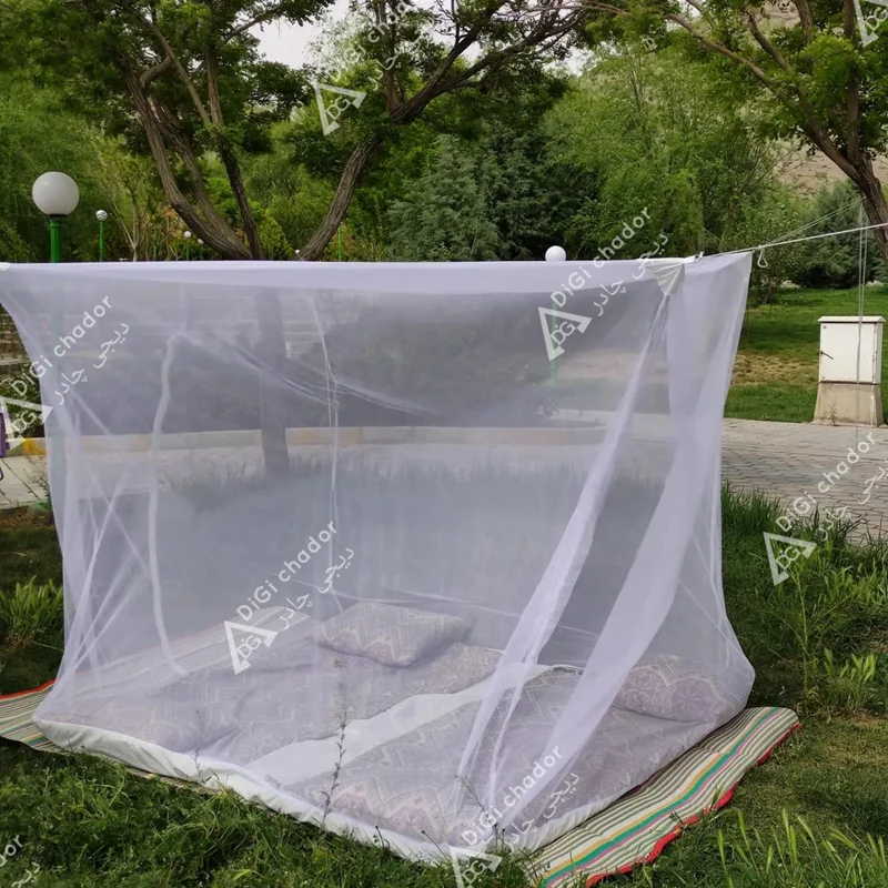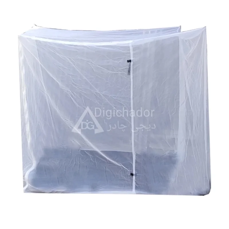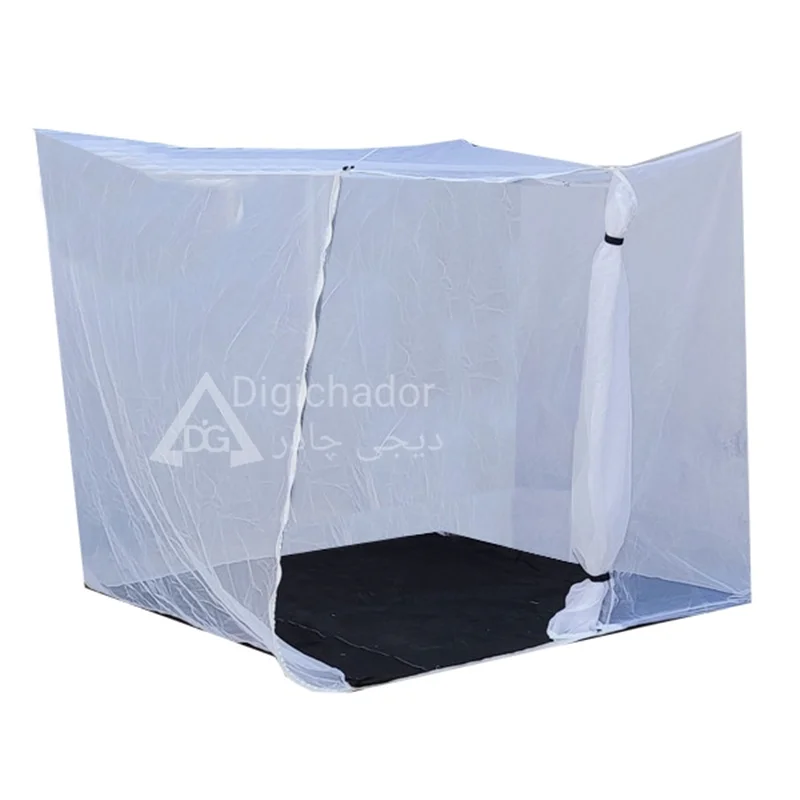 استراحت و خواب آسوده ارمغان محصولات دیجی چادر است و اکنون پشه بند چهار نفره دیجی چادر محصولی بزرگ و جادار با ساختار مکعب مربع در ابعاد 3 در 3 با ارتفاع 2 متر میباشد که تور استفاده شده در این محصول تور حریر ریزبافت درجه یک تهران با آهار بالا و مقاومت نسبی مناسب در برابر آفتاب است که به سفارش تیم صنعتی دیجی چادر از بهترین الیاف و با کیفیت بالا تولید و توری منحصر به فرد و بدون مشابه در بازار میباشد و بافتی بسیار ریز جهت جلوگیری از نفوذ هرگونه حشره حتی کک و پشه خاکی میباشد. این پشه بند با ابعادی بزرگ قابل استفاده در محوطه های باز، بخصوص در فصل گرما است. دوخت تمیز، قابلیت شستشو، زیپ درب وردی با زیپ ، ساک حمل مخصوص و همچنین حمل آسان از دیگر ویژگی های این محصول می باشد. در چهار طرف این محصول 8 قلاب تعبیه شده است که امکان باز کردن پشه بند در محیط باز را فراهم می کند. این محصول برای نشستن 12 نفر و یا خواب 6 نفر مناسب است.