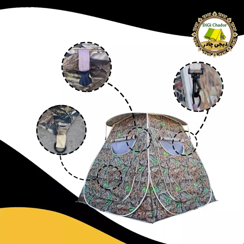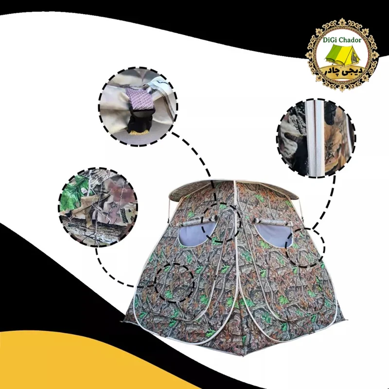 و اینبار یک چادر مسافرتی قدرتمند با پارچه منحصر به فرد نانو برزنت، ضخیم، مقاوم، طرح پارچه با عمق بالا و سه بعدی، دوخت vip با چرخ دو سوزنه و به صورت دوخت برگردان دولا در تمام قسمتهای داخلی (به نحوی که لبه پارچه در داخل رویت نمیشود و موجب مقاومت بیشتر در برابر نفوذ آب از دوخت ها و همچنین باطن زیبای چادر از داخل میشود) قویترین پارچه جهت استفاده در شرایط خشن محیطی با ضخامت و وزن و مقاومت بالای پارچه. چادر پانوراما 360 درجه چهارفصل تیم صنعتی دیجی چادر، نسل جدید چادرهای فنری است با قدرت ریسک بالای تولید که به جرعت میتواند قوی ترین نوع چادر فنری تولید داخل باشه که به صورت ویژه با متریال سفارشی مخصوص صادرات به تولید انبوه رسیده و به تعداد محدود در نمایندگی ها توزیع میشود. در طراحی اسکلت سقف از مدل هگزا بهره گرفته شده که فضای مناسب و جادار در داخل چادر ایجاد کرده با ارتفاع منطقی و بلند قابل استفاده برای افراد قد بلند هم میباشد. نکته خاص این چادر قسمت باز شونده سقف محصول یا به اصطلاح سقف پانوراما است که با زیپ تعبیه شده باز میشود و مجهز به توری پشه بند حریر ریزبافت نیز است که میتواند یکی از بهترین گزینه ها جهت دید به آسمان در مسافرتهای کویری و لذت بردن از آسمان و ستاره ها در تورهای گردشگری باشد. نکته بعدی مربوط به چهار ضلع چادر میباشد که دارای 4 درب بزرگ مجزا مجهز به تور حریر ریزبافت درجه یک است.چادر جدید پانوراما از پارچه نانو برزنت با افزایش ضخامت 60 درصدی پارچه بهره گرفته که این محصول را برای مناطق سردسیر و کوهستانی کشور نیز قابل استفاده سازد. این پارچه با طرحهای جذاب جنگلی و پاییزی و سرخپوستی، زیبایی دوچندان به محصول دادن تا شما از یک محصول حرفه ای لذت ببرید.در پکیج ویژه این محصول یک میز و 2 عدد صندلی به همراه چادر با قیمتی باورنکردنی ارائه شده که سری جدید این محصولات میز هم با طرح پارچه چادر ست شده و روکش دارد.
