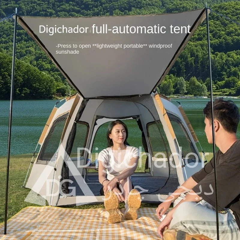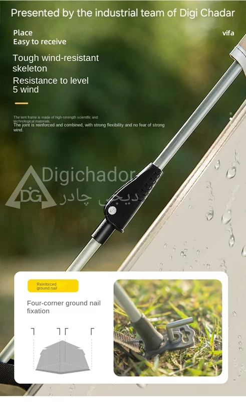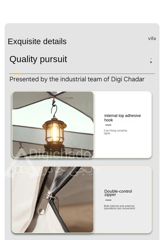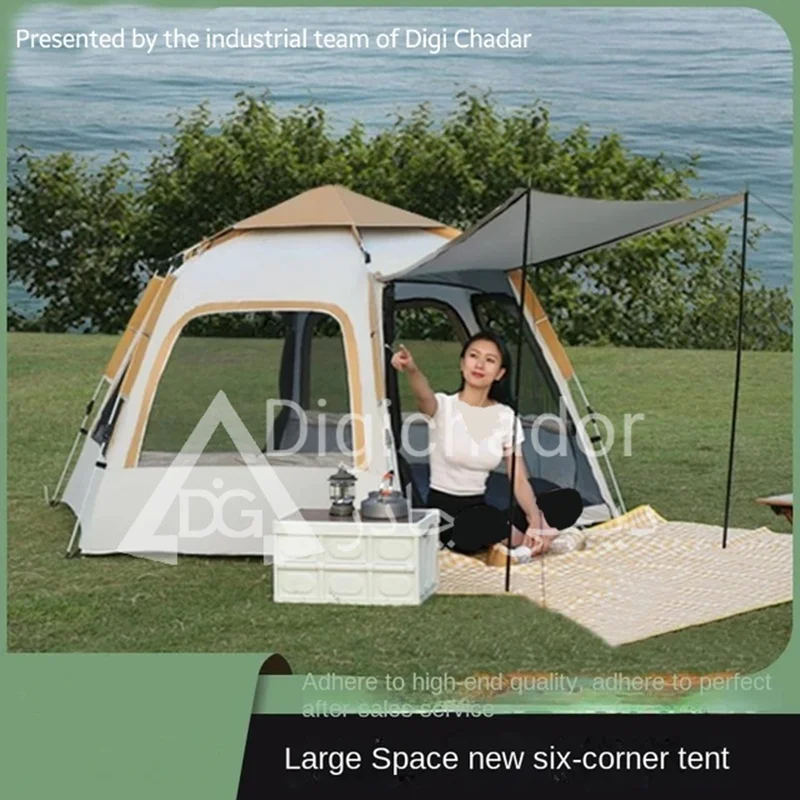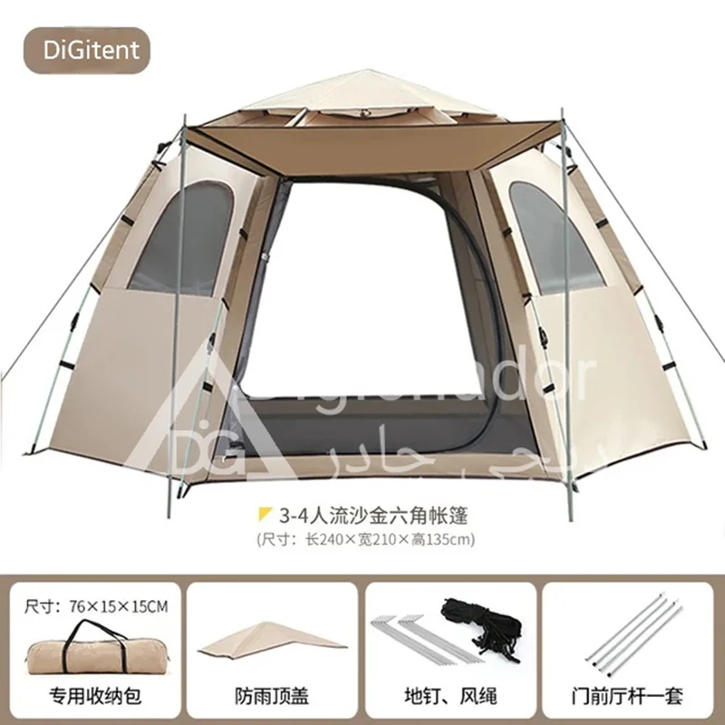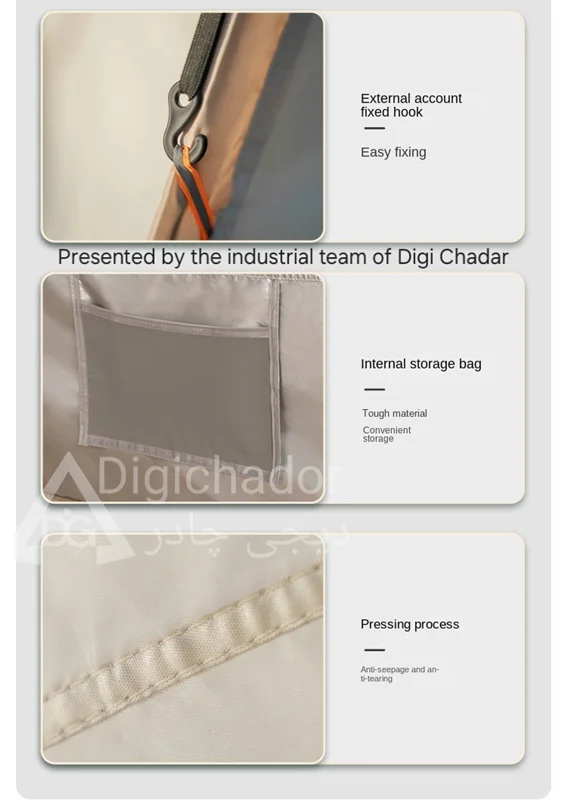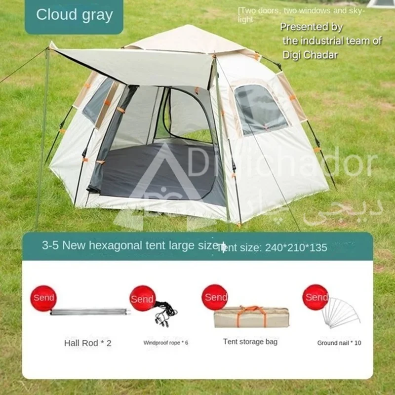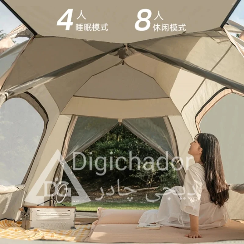 بنا بر درخواستهای مکرر مشتریان سایز بزرگ و جدید چادر شش ضلعی اتومات هم به سبد فروش دیجی چادر اصافه شد .محصولی خاص و منحصر به فرد با کاربرد ۲ منظوره چادر و پشه بند با قابلیت باز شو در 6 طرف و تبدیل به یک پشه بند اتومات حرفه ای . امکان ورود و خروج از دو طرف چادر . امکان باز و بست سریع و بدون نیاز به مهارت خاص. قابل حمل و نقل در پیمایش ها و پیاده روی های طولانی با توجه به وزن و حجم کم چادر .در مدل ۶ ضلعی به دلیل بهره بردن از ۶ ضلع استقرار بهتری در برابر بادهای شدید را دارد و با بستن میخ ها به کف تعادل بهتری را روی زمین به دست میآورد.