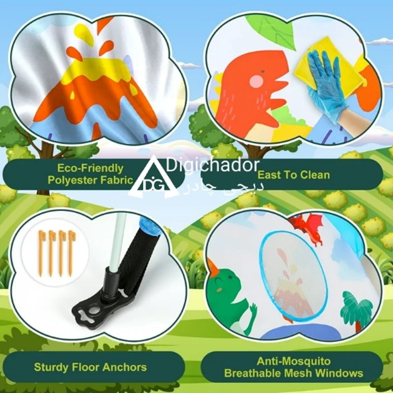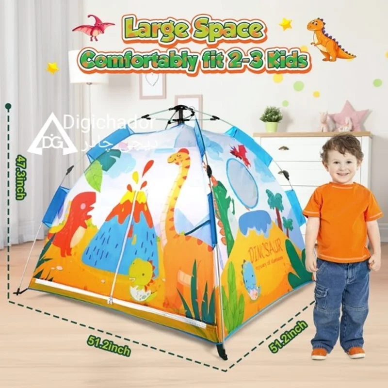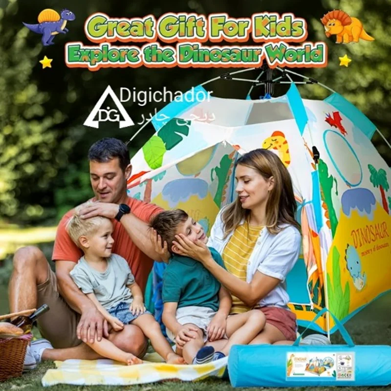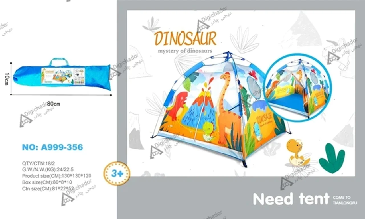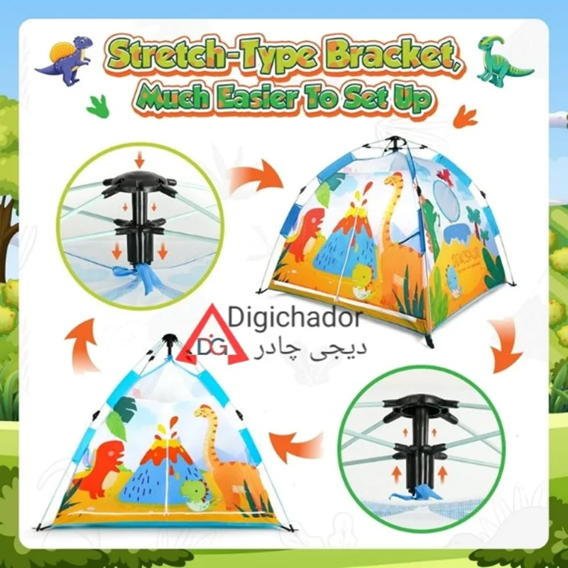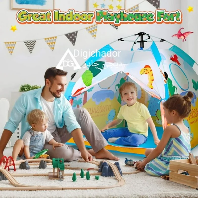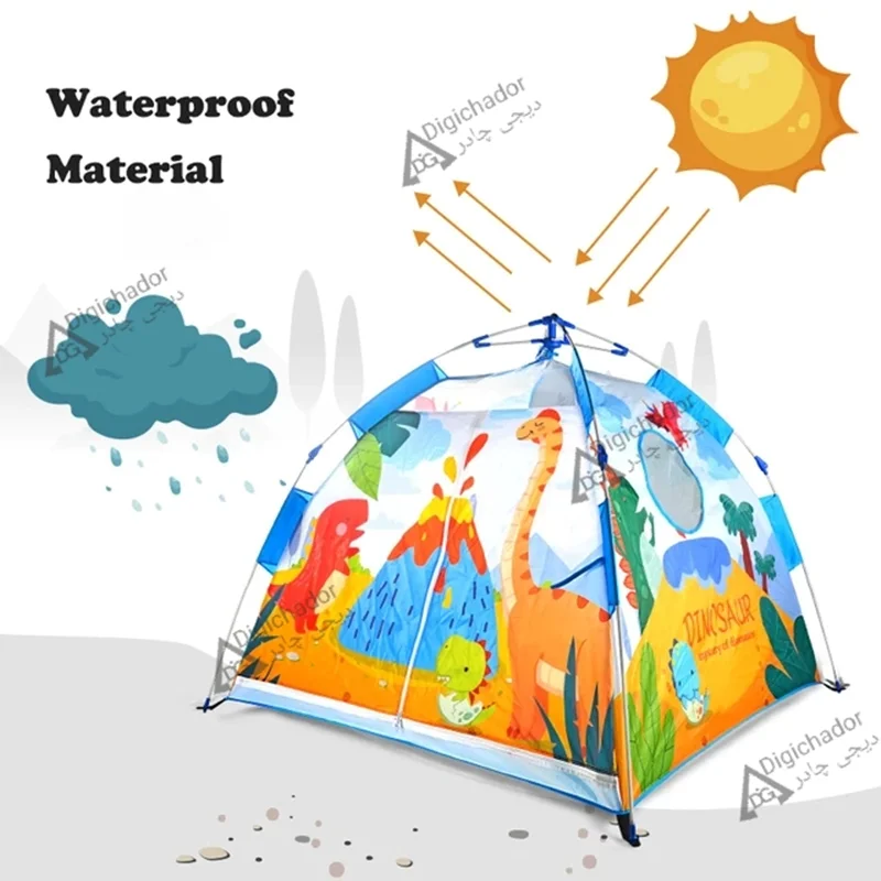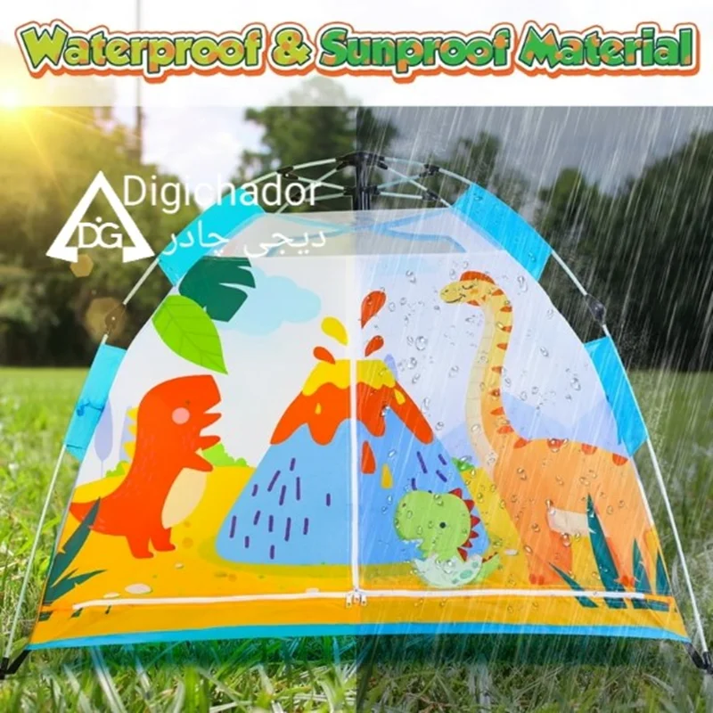 چادر مسافرتی کودک اتوماتیک وارداتی دیجی چادر محصولی خاص و منحصر به فرد در میان چادرهای بازی کودک و نوجوان است که با بهره گیری از پارچه پلی استر درجه یک و اسکلت فایبر گلس آسان تاشوی اتومات چتری به عنوان جدیدترین چادر بازی در نسل خود پا به بازار گذاشته و رقیب سرسخت و پرچمدار چادرهای بازی فنری و عصایی شده است. این محصول مشابه چادرهای سفری بزرگسالان تولید شده است و نمونه کوچک یه چادر اتومات میباشد و طرح سه بعدی روی آن از رنگهای جذاب الهام گرفته شده است و همه کودکان را به خود جذب خواهد کرد.مدل فوق دارای زانویی های تاشو و خم شویی هستند که از بهترین مواد درجه یک تولید شده اند و در صورت باز و بست صحیح، مدت های طولانی قابل استفاده هستند. این چادر دارای ساک حمل با طرح و رنگ پارچه اصلی و میخ های اتصال به زمین که در صورت نیاز به زمین کوبیده می شوند و استحکام چادر را دوچندان می کند (لازم به ذکر است که در حالت عادی نیاز به اتصال میخ ها نیست). از این چادر مسافرتی کودکان می توانید در مسافرت ها، در مهدکودک ها و حتی در خانه برای بازی و سرگرمی کودکان استفاده کنید.