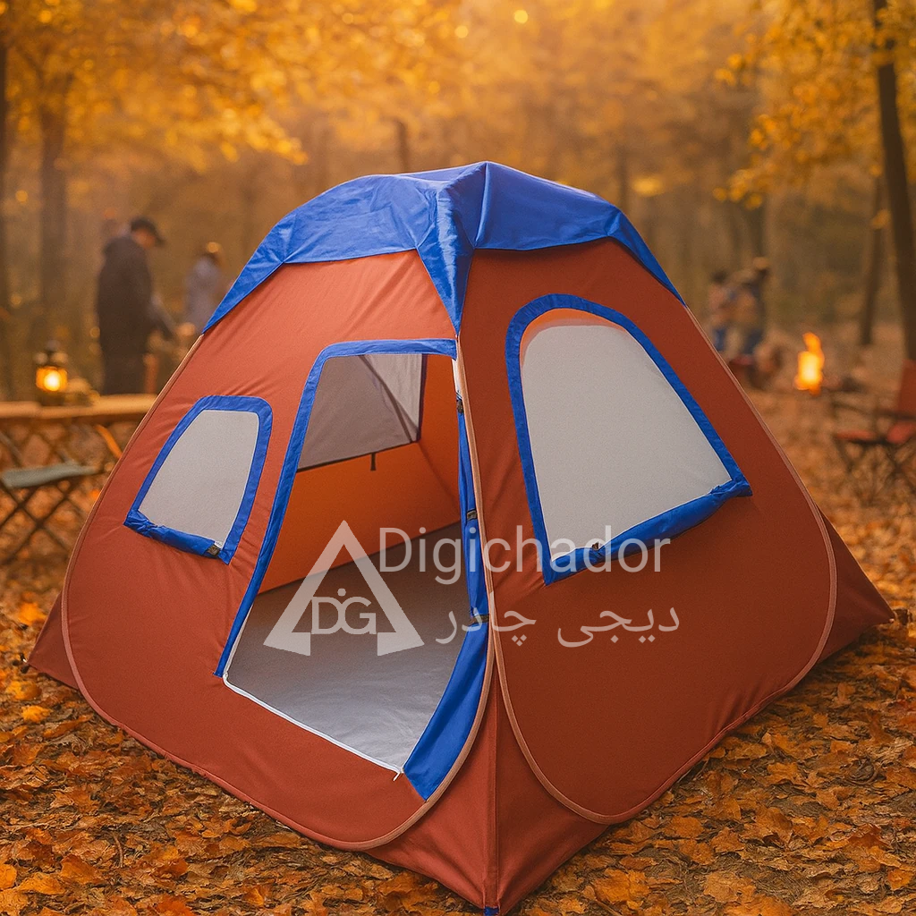 سوپر چادر مسافرتی ۱۰ نفره فنری کینگ دیجی چادر. در وصف این چادر میتوانیم بنویسیم که یک چادر مسافرتی فنری در رده پرچمدار و کامل وبی عیب و نقص با سایز استاندارد ۱۰ نفره ۲۷۰ در ۲۷۰ و ارتفاع ۲۲۰ سانت. روکش ضد آب سقف، دوخت داخل گان دوزی شده و پنجره های بزرگ و سقف سانروف.کیسه زباله نیز در پک این محصول تعبیه شده تا خودش رو یک چادر طبیعت دوست معرفی کند. از این چادر مسافرتی میتوان برای نشستن ۱۰ نفر و یا خواب ۵ نفر استفاده کرد .طراحی جدید درب ورودی و پنجره کنار درب این چادر ظاهر جذابی برای این محصول خاص و کلبه ای شکل ایجاد کرده و خبر از نسل جدید چادرهای فنری را میدهد. ولی لازم به ذکر است که وزن ۱۳ کیلویی این چادر حکایت از پارچه و فنر بندی قوی این چادر میکند و برای حمل انفرادی برای مسیرهای طولانی زیاد مناسب نیست و بیشتر برای حمل با خودرو توصیه میشود.نوع اسکلت این محصول فنری با روکش پلاستیکی و نوار ابریشم است که مشابه چادرهای کلاسیک فنری باز و بست میشود.چادر کینگ با دو جنس پارچه مختلف برنو و آکسفورد به تولید انبوه رسیده و امکان سفارش از وبسایت رسمی دیجی چادر را دارد.
