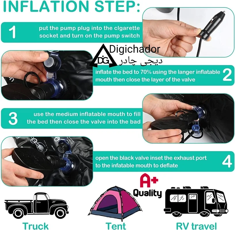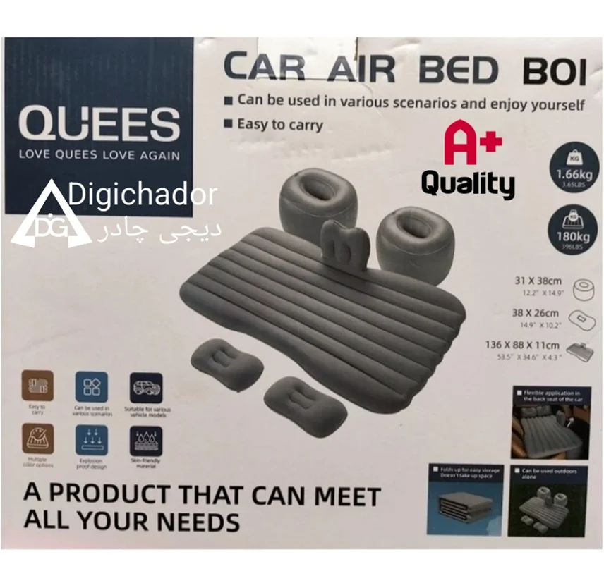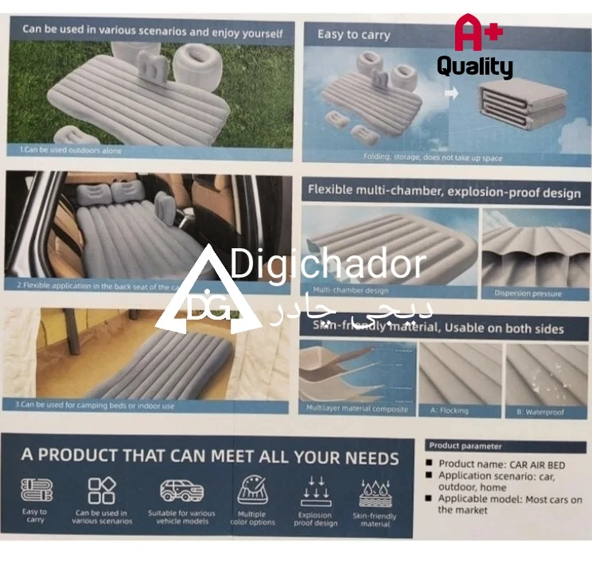 شما را به یک استراحت خوب و دلنشین در خودرو شخصی خودتان دعوت میکنیم! تشک بادی خودرو Aپلاس دیجی چادر، انتخابی ایدهآل برای تبدیل فضای داخلی خودروی شما به یک اتاق خواب دنج و راحت است. این تشک بادی دارای درجه کیفی A پلاس با طراحی منحصربهفرد و سازگاری کامل با فضای داخلی خودرو، تجربهای بینظیر از آسایش و استراحت را به ارمغان میآورد.ویژگیهای برجسته تشک بادی:*سازگاری کامل: طراحی این تشک بادی به گونهای است که به طور کامل با ابعاد و شکل صندلیهای عقب خودرو همخوانی دارد، بدون اینکه فضای اضافی اشغال کند یا از ثبات کافی برخوردار نباشد.*مواد با کیفیت: به کارگیری مواد پی وی سی مقاوم در برابر سایش و پارگی، اطمینان از دوام و عمر طولانی تشک را به همراه دارد. همچنین، سطح بالایی از نرمی و راحتی را فراهم میکند.*نصب آسان: تشک بادی به راحتی و در مدت زمان کوتاهی باد میشود و آماده استفاده است. با استفاده از پمپ باد اختصاصی، میتوانید تشک را در عرض چند دقیقه باد کنید و آماده استفاده نمایید و در آخر به راحتی تخلیه و جمع کنید.*حمل آسان: این تشک بادی قابلیت تا شدن و حمل آسان را دارد، به طوری که میتوانید آن را در صندوق خودرو قرار دهید و در هر مکانی که نیاز به استراحت دارید، از آن استفاده کنید.*تجربه خوابی آرام: سطح تشک بادی برای خوابی راحت و بدون دردسر طراحی شده است. این تشک به شما این امکان را میدهد که در طول سفرهای طولانی، خوابی آرام و بازسازی کننده داشته باشید.*ایدهآل برای مسافرتها: این تشک بادی برای کمپینگ، مسافرتهای جادهی، و حتی به عنوان یک تخت اضافی برای مهمانان در منزل، بسیار مناسب است.*طراحی ارگونومیک: تشک بادی با توجه به اصول ارگونومیک طراحی شده تا حمایت مناسبی از بدن شما در طول خواب ارائه دهد و از گرفتگی عضلات و دردهای مفصلی پیشگیری کند.با تهیه این تشک بادی مخصوص ماشین ، دیگر نیازی به نگرانی در مورد خستگی و ناراحتیهای ناشی از سفرهای طولانی نخواهید داشت. این محصول با توجه به نیازهای واقعی مسافران طراحی شده و تضمینکننده یک تجربه خواب عالی در حین سفر است. از کیفیت و آسایشی که تشک بادی ماشین به شما ارائه میدهد، لذت ببرید و سفرهایتان را به یادماندنیتر کنید.تشک بادی داخل خودرو محصولی است که شما به راحتی می توانید از آن در داخل تمامی خودروهای ایرانی و خارجی بدون هیچ گونه نگرانی استفاده کرده و لذت در اختیار داشتن یک محصول با کیفیت را تجربه کنید. در همین رابطه باید اشاره داشته باشیم که این محصول از نظر جنس و کیفیت نمونه ضخیم تر و درجه یک تشک های داخل ماشین به شمار می رود. از نظر امکانات شما می توانید مشاهده کنید که این محصول با درجه کیفی Aپلاس دیجی چادر دارای یک عدد ساک حمل ، یک عدد برچسب تعمیرات ، دو عدد بالش بادی مجزا و همین طور یک عدد پمپ باد فندکی دو کاره می باشد که با استفاده از این پمپ شما هم می توانید باد داخل محصول را خالی نموده و هم به راحتی در کمتر از یک دقیقه محصول را راه اندازی کنید.تفاوت تشک بادی تشک بادی داخل خودرو با سایر مدل های موجود در سایت که قیمت ارزان تری دارند در دو عامل می باشد. مسئله مهم اول بحث ضخامت بدنه این تشک بادی داخل ماشین است که در نوع Aپلاس نسبت به سایر محصولات از ضخامت بیشتری در بخش زیرین و برزنتی این تشک برخوردار است. در واقع این ضخیم بودن این محصول با گرید Aپلاس دیجی چادر نسبت به سایر مدل ها باعث شده تا مشتریان بتوانند به بهترین شکل ممکن بهترین کیفیت در میان تشک های بادی داخل ماشین را در اختیار داشته باشند. مورد دوم پمپ باد فندکی محصول با درجه کیفی Aپلاس دیجی چادر است که قدرت و عمر بیشتری نسبت به دیگر مدل ها داراست و در بازه زمانی بسیار کوتاهی و با قدرت فراوان می توانید محصول را راه اندازی کنید. با در نظر گرفتن این توضیحات هم اکنون امکان خرید این تشک بادی داخل خودرو و با کیفیت Aپلاس از سایت دیجی چادر برای شما فراهم می باشد.