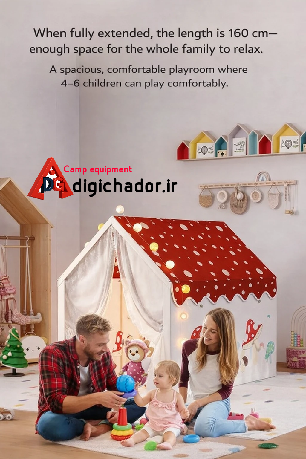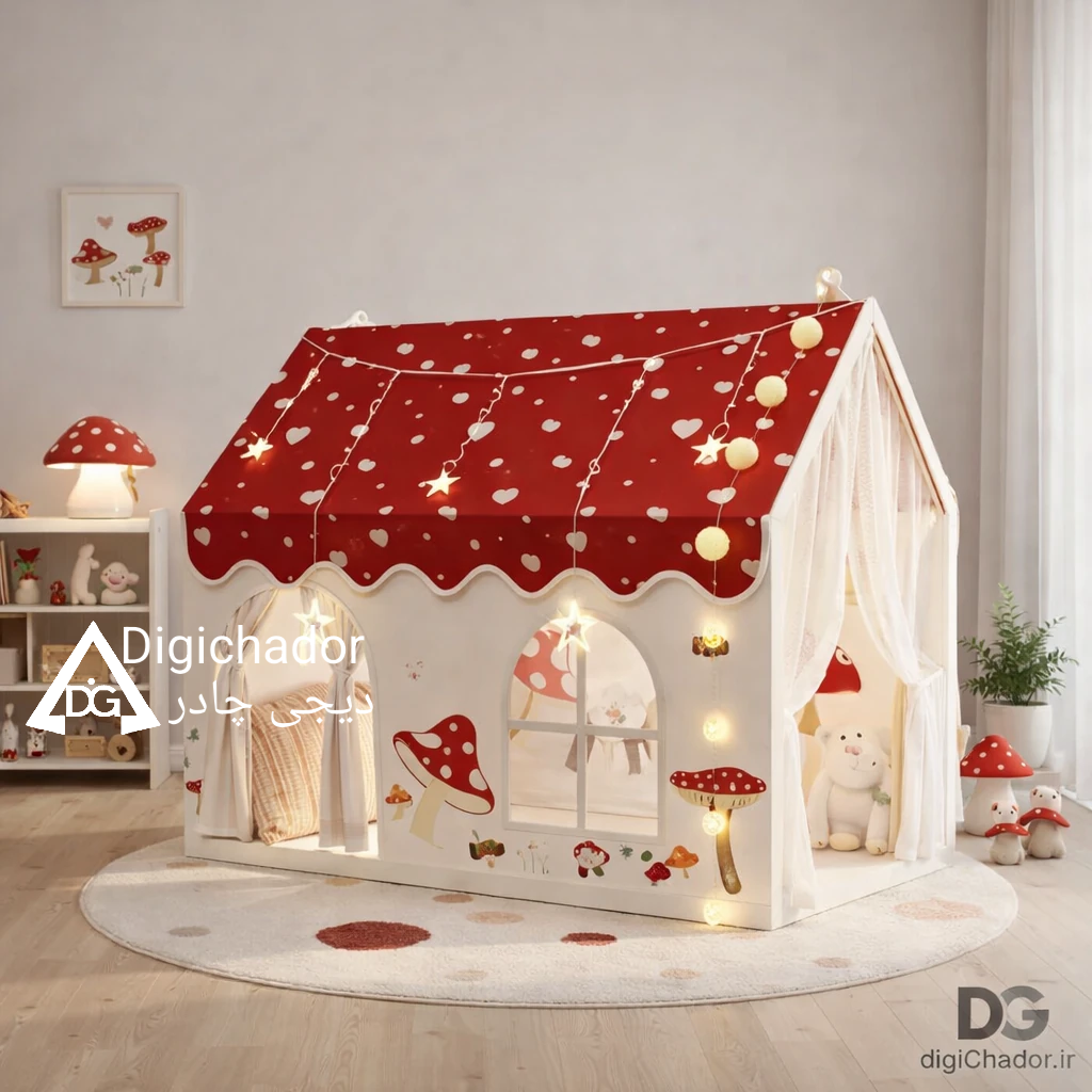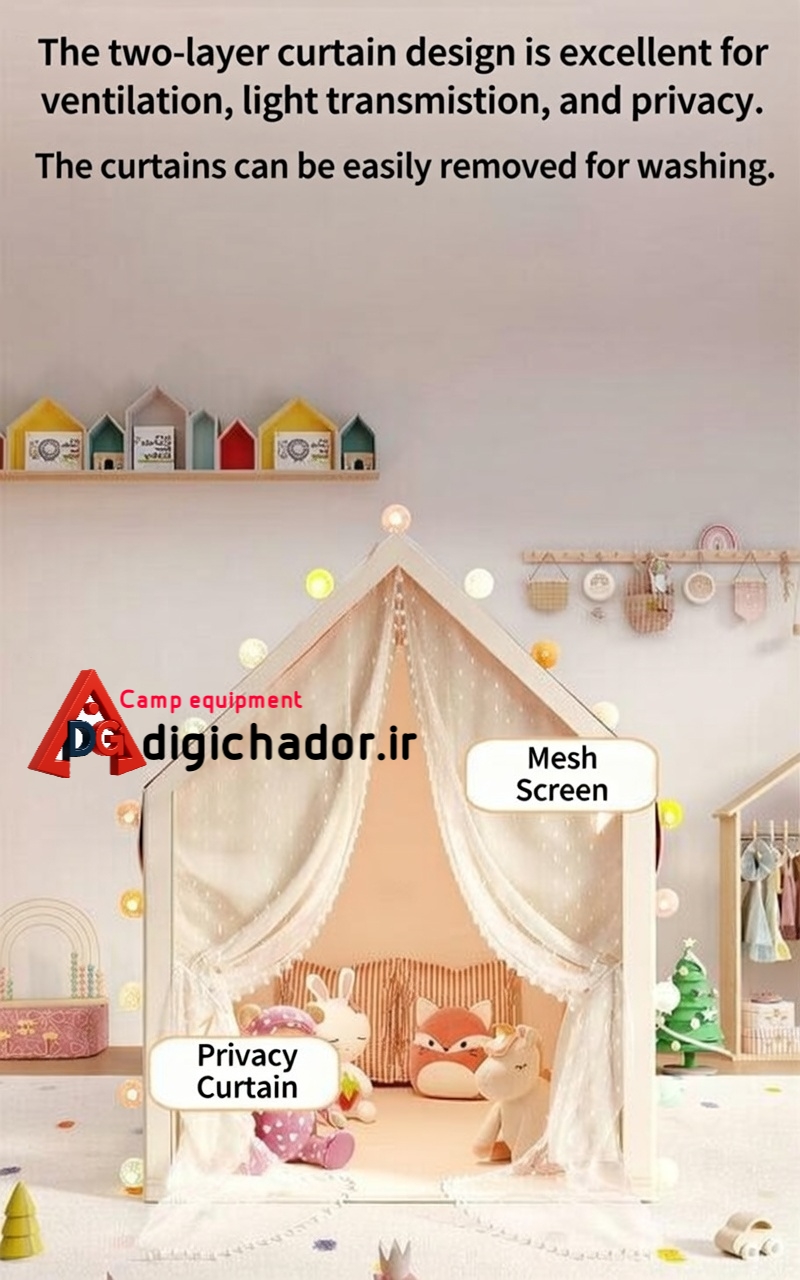 ((دنیایی رؤیایی در فضای بزرگ بسازید)) بزرگترین خانهبازی دخترانه دیجیچادر؛ مناسب بازی همزمان چند کودک. ابعاد چادر بازی کودک **(105×160×128 سانتیمتر)** است و فضای کافی برای بازی، استراحت یا مطالعهی کودک فراهم میکند. حتی شما هم میتوانید همراه دوستان یا فرزندتان در این فضای جذاب وقت بگذرانید. طراحی کاربردی با درب دوگانه چادر بازی کودک دارای **طراحی دو درب** است که ورود و خروج را آسان کرده و تهویهی عالی ایجاد میکند. پنجرههای متعدد با جریان مداوم هوای تازه، محیطی دلپذیر برای بازی فراهم میسازند. ☀️### محافظت فوقالعاده در برابر حشرات این چادر مجهز به **توری بسیار ریز** است که مانع ورود حشرات و مگس میشود، تا کودکان بتوانند بدون نگرانی در محیطی ایمن بازی کنند.### ساختار مستحکم و قابل اعتماد فریم این چادر از **اسکلت مقاوم و بادوام** ساخته شده است تا ایمنی کامل کودکان هنگام استفاده تضمین شود. مناسب برای استفادهی طولانیمدت.### قابل جداسازی و حمل آسان طراحی **قابلجداسازی** این چادر بازی باعث میشود بهراحتی جمع و جابهجا شود. گزینهای ایدهآل هم برای **استفاده در خانه، هم در سفر و کمپینگ**. کودکان عاشق این چادر خواهند شد! 💛