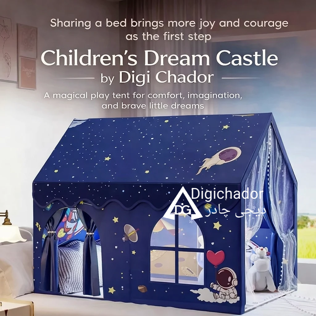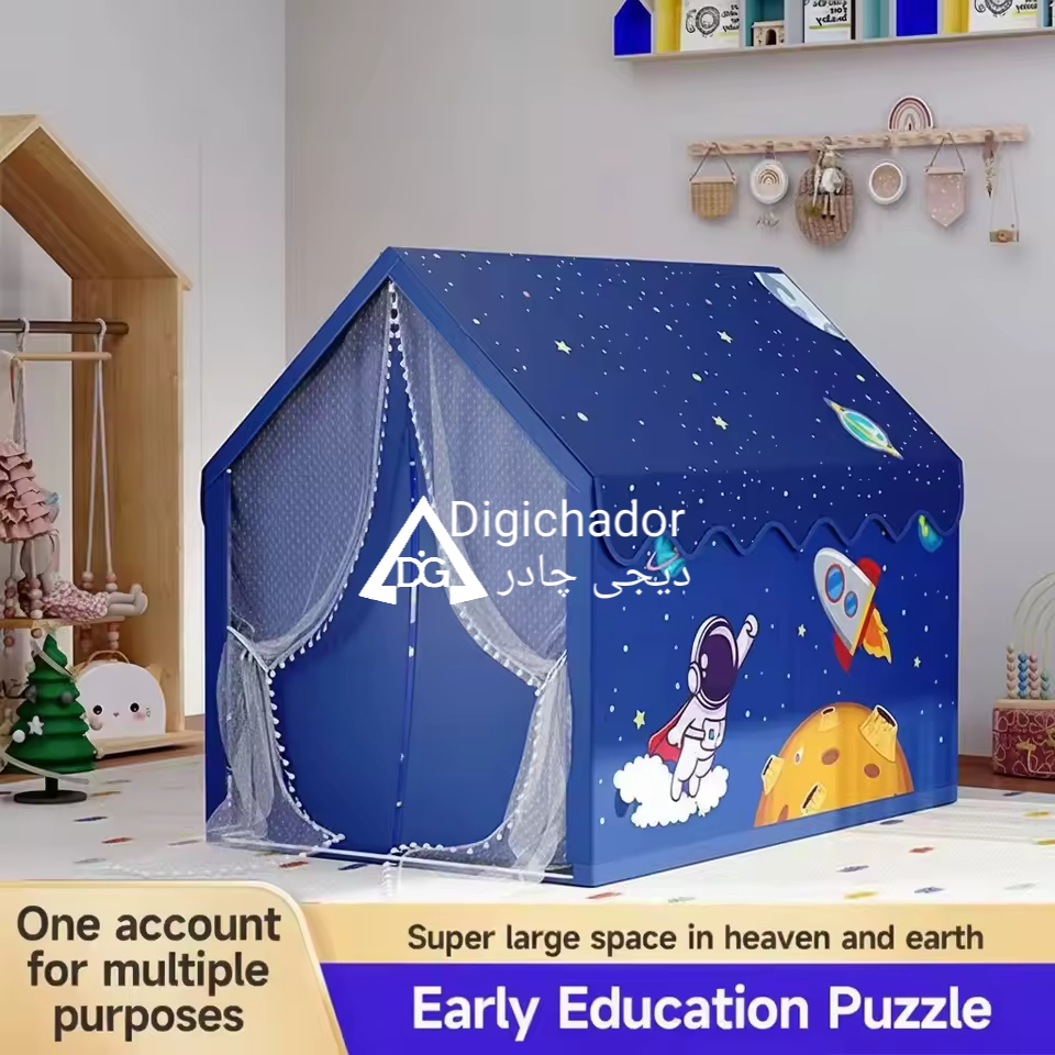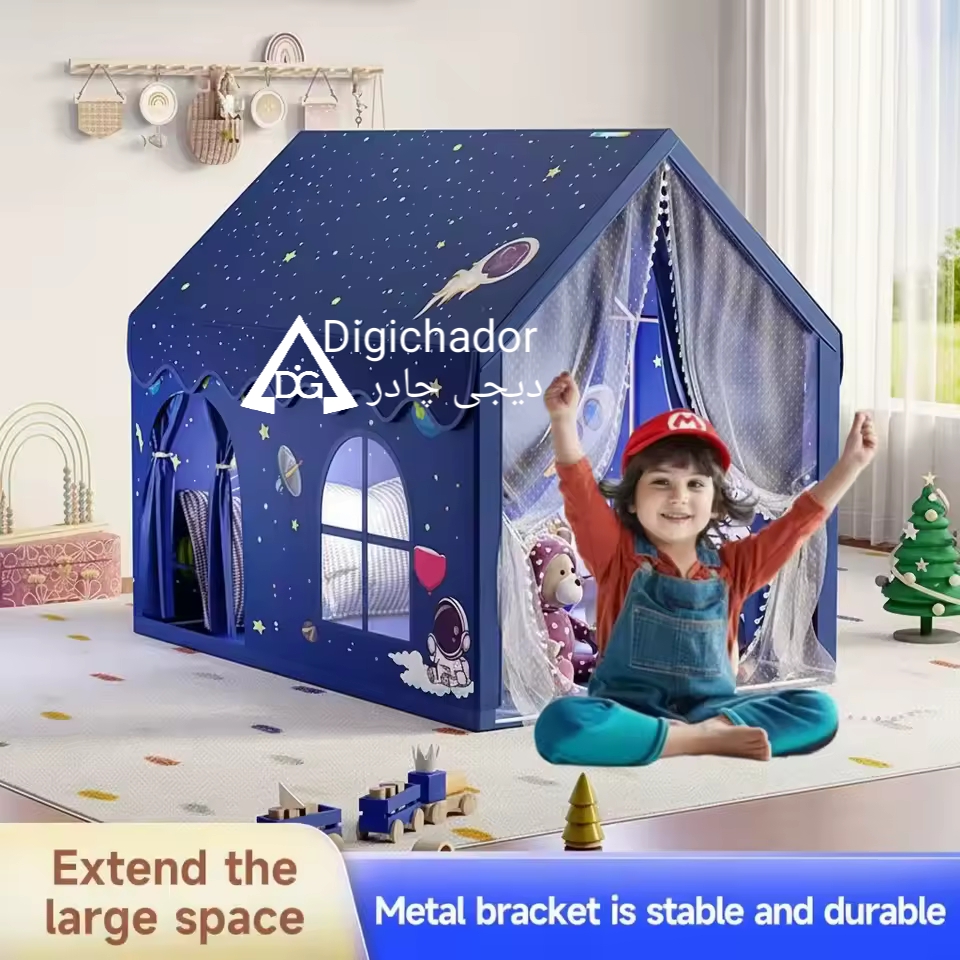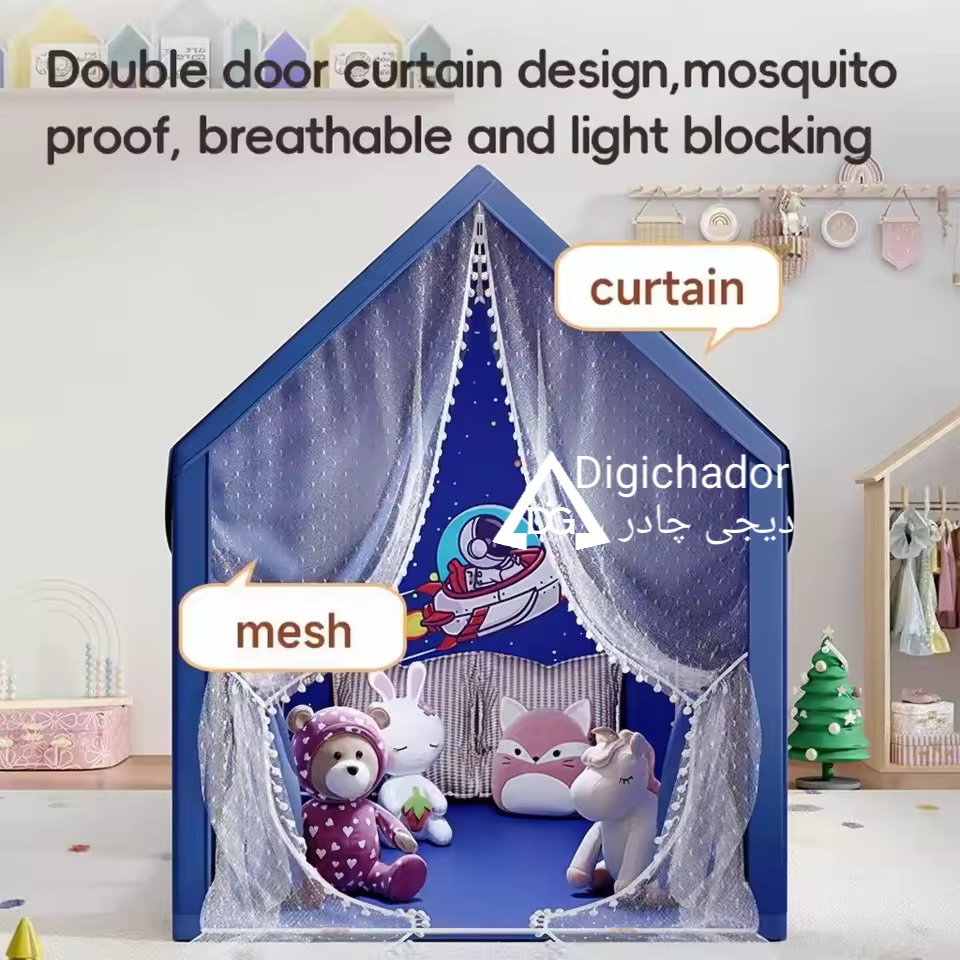 ((دنیایی رؤیایی در فضای بزرگ بسازید)) بزرگترین خانهبازی فضایی دیجیچادر؛ مناسب بازی همزمان چند کودک . ابعاد چادر بازی کودک **(105×160×128 سانتیمتر)** است و فضای کافی برای بازی، استراحت یا مطالعهی کودک فراهم میکند. حتی شما هم میتوانید همراه دوستان یا فرزندتان در این فضای جذاب وقت بگذرانید. طراحی کاربردی با درب دوگانه چادر بازی کودک دارای **طراحی دو درب** است که ورود و خروج را آسان کرده و تهویهی عالی ایجاد میکند. پنجرههای متعدد با جریان مداوم هوای تازه، محیطی دلپذیر برای بازی فراهم میسازند. ☀️### محافظت فوقالعاده در برابر حشرات این چادر مجهز به **توری بسیار ریز** است که مانع ورود حشرات و مگس میشود، تا کودکان بتوانند بدون نگرانی در محیطی ایمن بازی کنند.### ساختار مستحکم و قابل اعتماد فریم این چادر از **اسکلت مقاوم و بادوام** ساخته شده است تا ایمنی کامل کودکان هنگام استفاده تضمین شود. مناسب برای استفادهی طولانیمدت.### قابل جداسازی و حمل آسان طراحی **قابلجداسازی** این چادر بازی باعث میشود بهراحتی جمع و جابهجا شود. گزینهای ایدهآل هم برای **استفاده در خانه، هم در سفر و کمپینگ**. کودکان عاشق این چادر خواهند شد! 💛