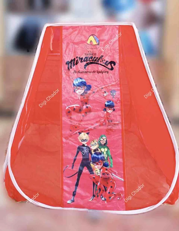 پشه بندهای دو منظوره انیمیشن دیجی چادر نسل جدید پشه بندهای کودک و نوجوان هست که در قالب چادر بازی انیمیشن تولید شده و میتواند به عنوان یه چادر بازی هم کاربرد داشته باشد. این محصول دارای تصاویر زیبای سه بعدی انیمیشن های جذاب میباشد و بهترین محصول جهت کنترل والدین روی فرزندان در زمان بازی است. کف این محصولات از پارچه ضد تعریق و ضد حساسیت برای کودکان استفاده شده و در قسمت بدنه از تور حریر ریزبافت درجه یک با رنگهای جذاب کار شده. پشه بند انیمیشن دارای درب ورودی مجهز به زیپ شماره 5 است و مشابه چادر مسافرتی فنری به راحتی جمع میشود و به صورت دایره ای در کاور خود قرار میگیرد.
