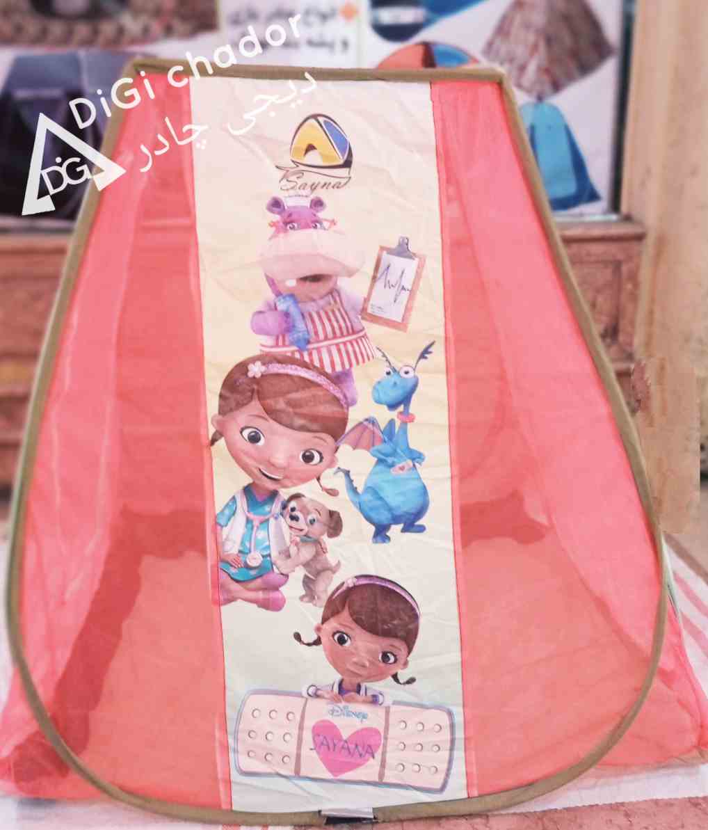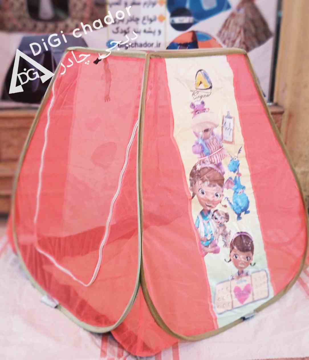 پشه بندهای دو منظوره انیمیشن دیجی چادر نسل جدید پشه بندهای کودک و نوجوان هست که در قالب چادر بازی انیمیشن تولید شده و میتواند به عنوان یه چادر بازی هم کاربرد داشته باشد. این محصول دارای تصاویر زیبای سه بعدی انیمیشن های جذاب میباشد و بهترین محصول جهت کنترل والدین روی فرزندان در زمان بازی است. کف این محصولات از پارچه ضد تعریق و ضد حساسیت برای کودکان استفاده شده و در قسمت بدنه از تور حریر ریزبافت درجه یک با رنگهای جذاب کار شده. پشه بند انیمیشن دارای درب ورودی مجهز به زیپ شماره 5 است و مشابه چادر مسافرتی فنری به راحتی جمع میشود و به صورت دایره ای در کاور خود قرار میگیرد.