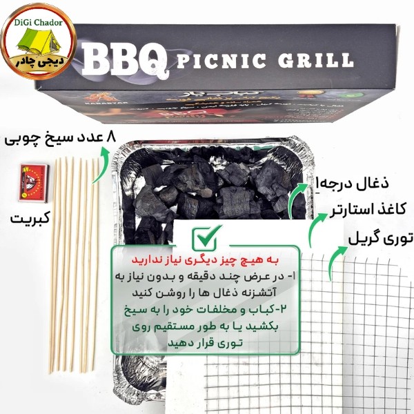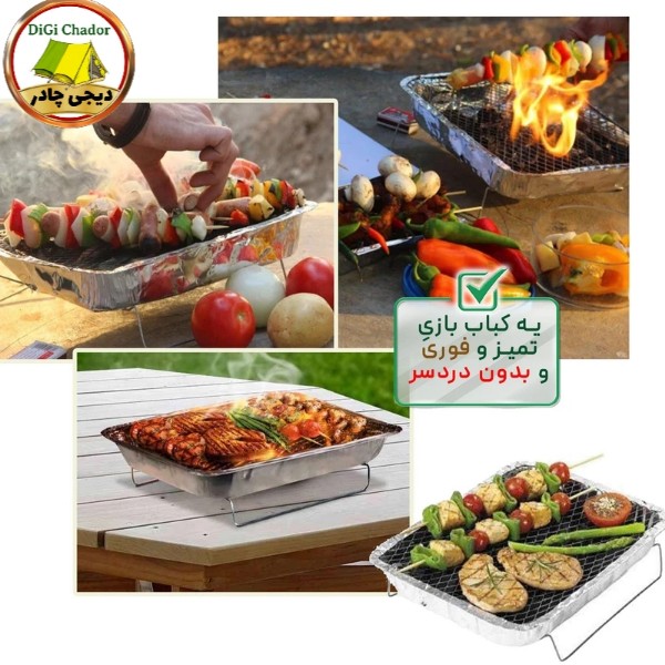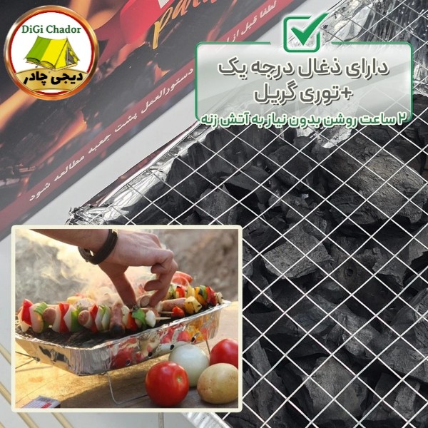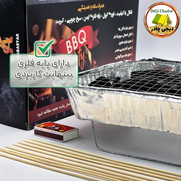 معرفی منقل یکبار مصرف کباب یار دیجی چادر: منقل یکبار مصرف کباب یار انتخابی فوقالعاده برای کسانی است که به دنبال راحتی، سرعت و تجربهای متفاوت از پخت کباب در سفر، پیکنیک یا حتی حیاط منزل هستند. این محصول همراه با ذغال آماده، سیخ و تمام وسایل ضروری طراحی شده تا شما بدون دردسر بتوانید یک کباب خوشمزه و دلچسب آماده کنید. مزیت بزرگ این منقل آن است که نیازی به آتشزنه، بادبزن یا ذغال اضافه ندارید. کافی است تنها با یک کبریت آن را روشن کنید و در کمتر از چند دقیقه آماده استفاده خواهد بود. حرارت یکنواخت و مداومی که تا حدود دو ساعت تولید میکند، فرصت مناسبی به شما میدهد تا انواع گوشت، مرغ، ماهی یا حتی سبزیجات را به بهترین شکل کبابی کنید. همچنین شما میتوانید غذا را بسته به سلیقه خود، هم روی توری مخصوص قرار دهید و هم با سیخ کباب کنید. این ویژگی باعث میشود کاربری منقل برای همه افراد ساده و کاربردی باشد. با این محصول سبک، جمعوجور و اقتصادی، دیگر نیازی به حمل تجهیزات سنگین باربیکیو یا صرف زمان زیاد برای آمادهسازی آتش ندارید. فقط کافی است آن را همراه خود ببرید و در هر جایی که خواستید، یک دورهمی خوشمزه و خاطرهانگیز بسازید.