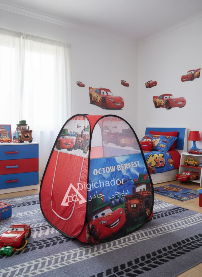 چادر بازی کودک طرح ماشین ها مدل فنری – DigiChador چادر بازی کودک DigiChador با طرح محبوب cars انتخابی عالی برای والدینی است که بهدنبال یک فضای امن، جذاب و کاربردی برای بازی، استراحت و سرگرمی کودک هستند. این چادر با طراحی جمعوجور، وزن سبک و قابلیت استفادهی دوگانه، هم بهعنوان چادر بازی داخل خانه و هم پشهبند کاربردی قابل استفاده است. ویژگیهای اصلی محصول: 1. پارچه باکیفیت پلیاستر پشت نقره استفاده از پلیاستر پشت نقره باعث:افزایش مقاومت در برابر نورایجاد محیط خنکتردوام بالاتر و تمیزکاری آسان ایستایی بهتر بدنه2. اسکلت فنری آسانتاشو باز و بسته شدن در چند ثانیه بدون نیاز به ابزار مناسب برای حمل روزانه، سفر، خانهبازی و اتاق کودک 3. جمعشدن به ابعاد کاملاً کوچک جمع شده در یک بستهی دایرهای ۴۰ سانتیمتریجایگیری راحت در کمد، صندوق ماشین یا قفسه حمل بسیار آسان در خانه و بیرون.4. استفاده دو منظوره پشه بند و چادر بازی (Play Tent + Mosquito Net)مناسب برای بازیهای خیالی، مطالعه، نشستن و استراحت در محیط باز یا کنار پنجره، نقش پشهبند کودک را هم بهخوبی ایفا میکند5. کف از جنس اسپانباندضدحساسیت و ایمنمقاومت مناسب در برابر ساییدگی مناسب برای نشستن، خوابیدن و قرار گرفتن اسباببازیها 6. ابعاد استاندارد و جادارطول و عرض کف: ۱۰۰ × ۱۰۰ سانت ارتفاع: ۱۱۰ سانت مناسب برای کودکان ۱ تا ۷ سال فضای کافی برای عروسک، وسایل بازی و نشستن همزمان کودک 7. وزن سبک و حمل آسان وزن تنها ۹۳۵ گرم کاملاً مناسب استفاده روزانه مزایای خرید از دیجی چادر DigiChador:طراحی تخصصی و ایمن برای کودک کیفیت ثابتشده پارچه و دوخت عکسهای اختصاصی و واقعی از خود محصول پشتیبانی حرفهای و ارسال سریع مناسب برای اتاق کودک مهدکودک تراس و حیاط سفر، پیکنیک و مهمانیهای تولد یا جایزه مناسبتی برای کودک و دیزاین کردن اتاق کودک و نوزاد با تم کرومی.