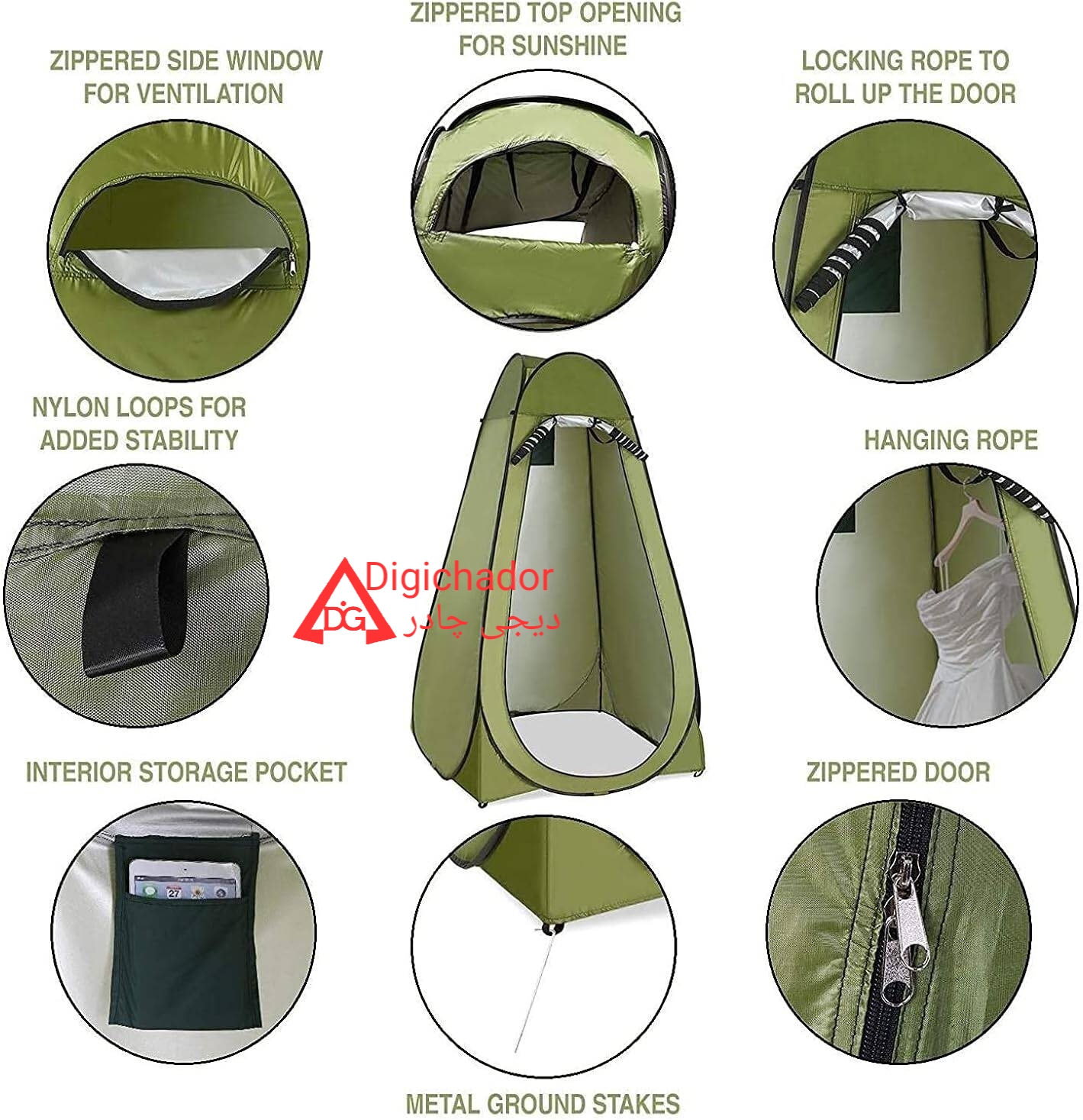 چادر فنری توالت و حمام صحرایی | چندمنظوره و سریعنصباگر در سفر، کمپینگ، طبیعتگردی یا حتی موقع عکاسی و مراسم فضای باز به حریم شخصی، نصب سریع و portability بالا نیاز دارید، این چادر فنری چندمنظوره دقیقاً برای همین طراحی شده است.این چادر بدون نیاز به تیرک یا ابزار، در چند ثانیه باز میشود و بهراحتی برای توالت صحرایی، حمام کمپینگ، تعویض لباس و حتی استفاده عکاسی قابل استفاده است.✅ ویژگیهای اصلی محصولفنری (Pop-Up): باز و بسته شدن بسیار سریع بدون تیرکطراحی ایستاده با ارتفاع مناسب: امکان استفاده راحت برای بزرگسالپارچه مقاوم و ضخیم: حفظ حریم خصوصی و دوام بالا در فضای بازدرب زیپی با بند جمعکننده: دسترسی آسان و تهویه کنترلشدهپنجره و دریچه تهویه زیپی: جریان هوا بدون از بین رفتن حریمجیب داخلی کاربردی: برای موبایل، دستمال، لوازم شخصیقلاب داخلی: مناسب آویزانکردن لباس یا حولهمیخ مهار فلزی: تثبیت چادر روی زمین در فضای باز . کاربردها: 🚿 حمام صحرایی و کمپینگ🚻 توالت قابل حمل در طبیعت یا جاده👕 رختکن سریع برای تعویض لباس📸 استفاده آتلیهای و عکاسی فضای باز🌴 ساحل، پارک، کویر و سفرهای جادهای⛺ مکمل عالی کنار چادرهای مسافرتی. مشخصات کلی: نوع سازه: فنری / Pop-Upکاربری: تکنفره (Single) یا دونفره (بسته به مدل)نصب: بدون ابزارحمل: سبک، تاشو و کمجامناسب: کمپینگ، آفرود، سفر، طبیعتگردی و استفاده شخصی. مزیت رقابتیبرخلاف چادرهای تیرکدار یا مدلهای دستوپاگیر، این چادر:سریعتر باز میشودفضای عمودی بهتری داردبرای استفادههای متنوع طراحی شدهحمل و جمعکردنش بسیار ساده است