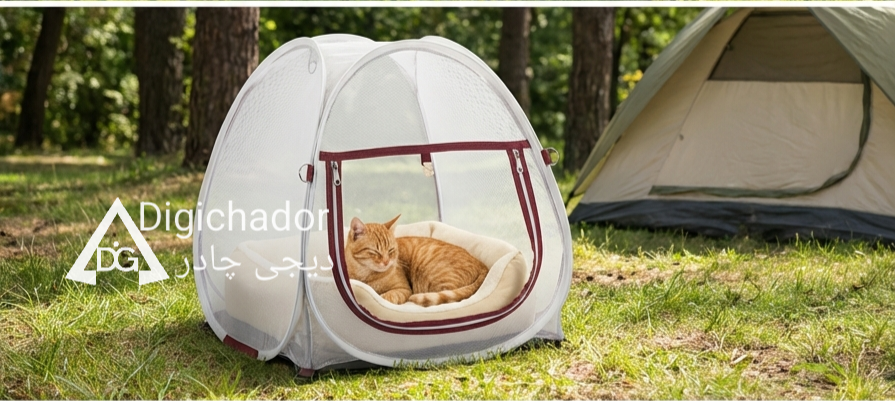 محصولی منحصر به فرد ازتیم صنعتی دیجی چادر، خانه همراه پت . چادر توری مناسب پت، مدلی است که با توری پلیمری ضخیم و حلقه‌های مهار فلزی محکم، امنیت و دوام بالایی دارد. کف آن از برزنت است و ضدآب و مقاوم در برابر نفوذ آب و خاک است. این چادر برای پت‌های خانگی مانند سگ، گربه، همستر و پرندگان زینتی مناسب است و امکان رویت از بیرون را فراهم می‌کند. دارای درب زیپدار است که باز و بسته شدن آسان و سریع را میسر می‌سازد. ساختار آن مانند چادرهای مسافرتی فنری است و به راحتی باز و بسته می‌شود. همچنین کیف حمل مخصوص دارد و در حالت جمع شده به شکل دایره در می‌آید، که فضای نگهداری را کاهش می‌دهد و حمل و نقل را آسان می‌کند. این چادر ترکیبی از ایمنی، راحتی و قابلیت حمل است. این محصول توسط تیم صنعتی دیجی چادر در سایزهای کوچک، متوسط و بزرگ تولید و ارائه می‌شود.