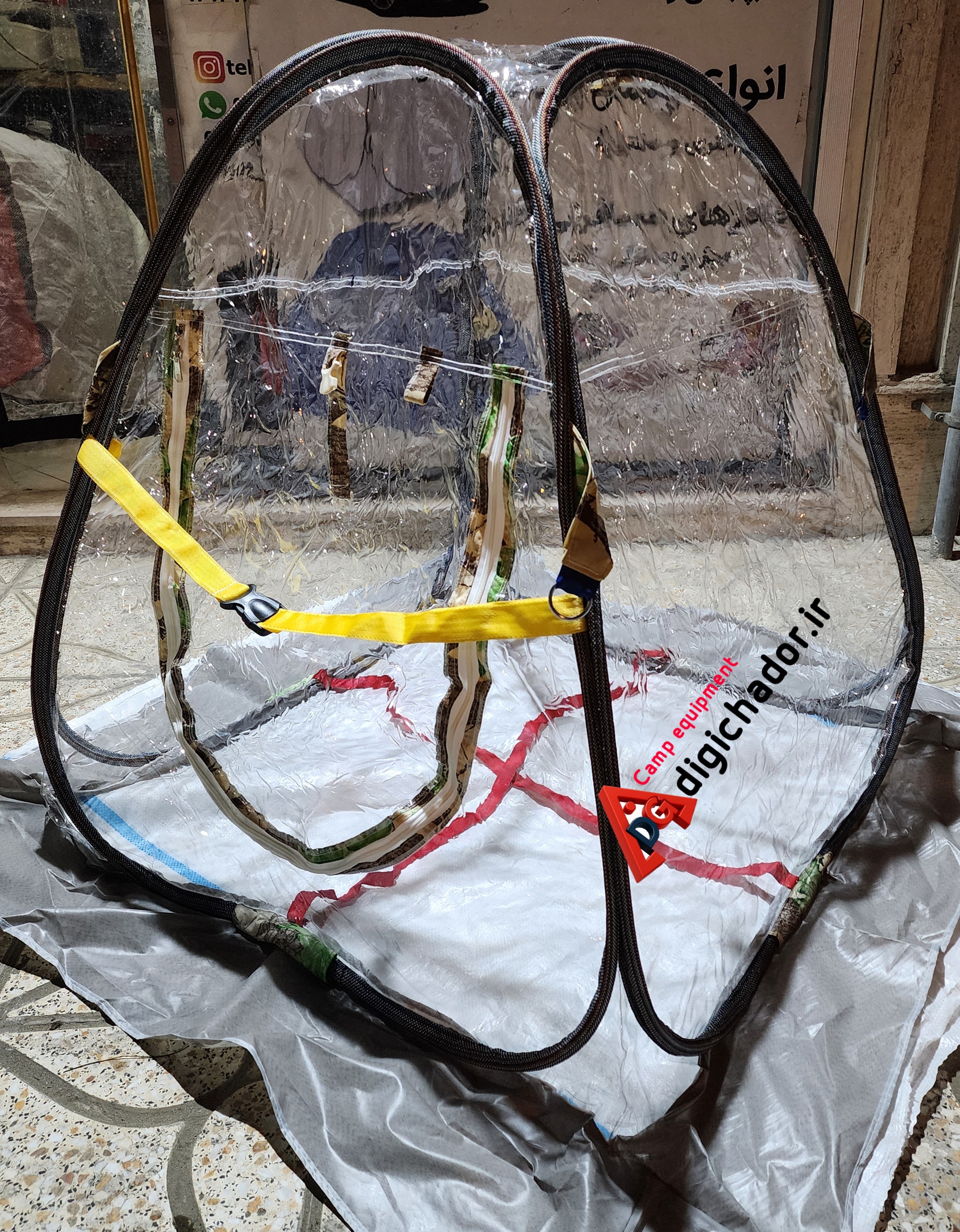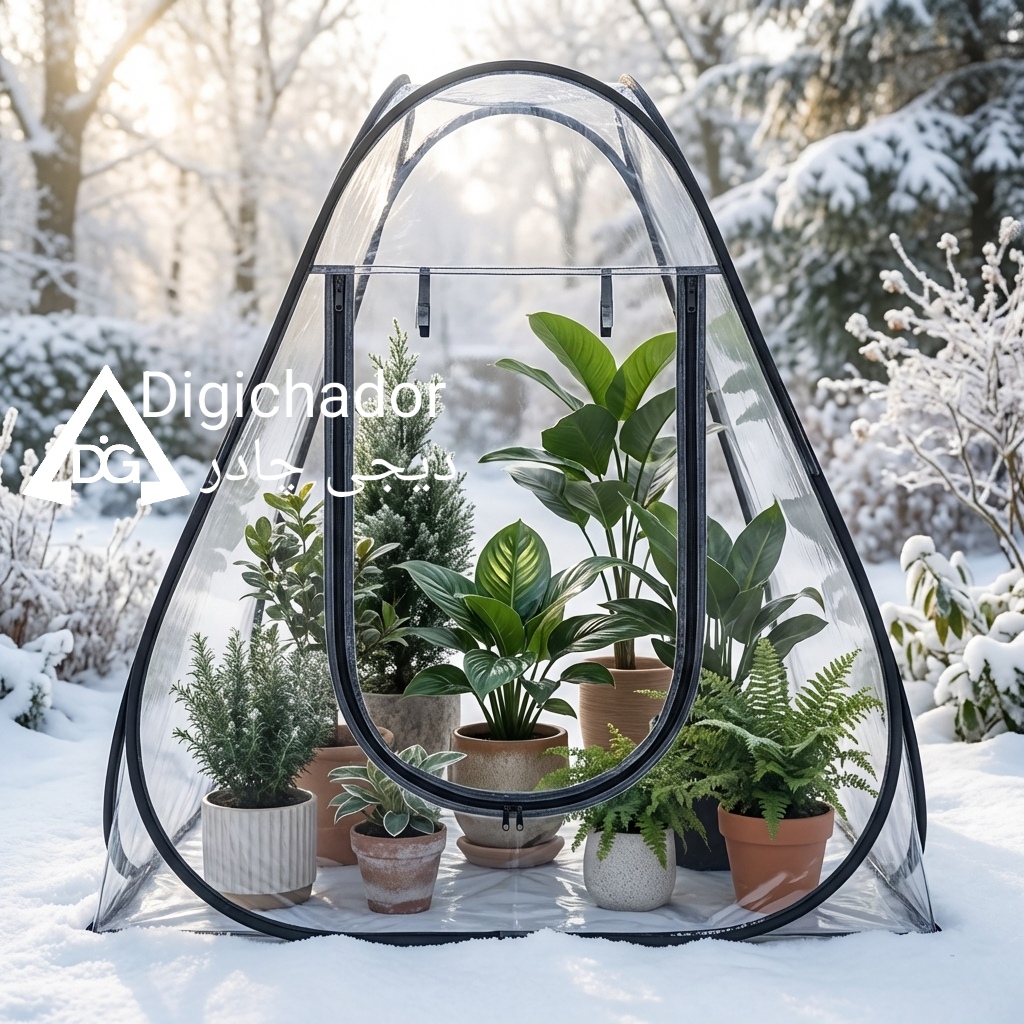 گلخانه به سبک دیجی چادر .محصولی خاص از تیم صنعتی دیجی چادر.  چادر فنری شفاف طلقی pvc ضد آب و ضد گردوخاک و بردت و سرما. مناسب جهت استفاده برای گلخانه در شرایط هوای سرد . مناسب برای استفاده ی تیم فیلمبرداری و کارگردانی، مناسب برای استفاده جهت موارد خاص که نیاز به رویت و دیدن داخل و خارج چادر وجود دارد. نورگیر صدرصد . ضد آب با اسکلت فنری آسان تاشو . نایلون طلقی قوی مناسب برای استفاده جهت انواع مصارف در شرایط مختلف . مناسب جهت استفاده برای آلاچیق . مناسب جهت استفاده در ماهیگیری و طبیعت گردی هایی که نیاز به رویت اطراف وجود دارد و حتی چادر بازی کودک و یا خانه ی انواع پت و صدها استفاده مختلف از یک محصول خاص. این محصول از نایلون طلقی وارداتی درجه یک در ضخامت های ۱۵ و ۲۵ صدم و سایزهای کوچک و متوسط و بزرگ تولید می‌شود.