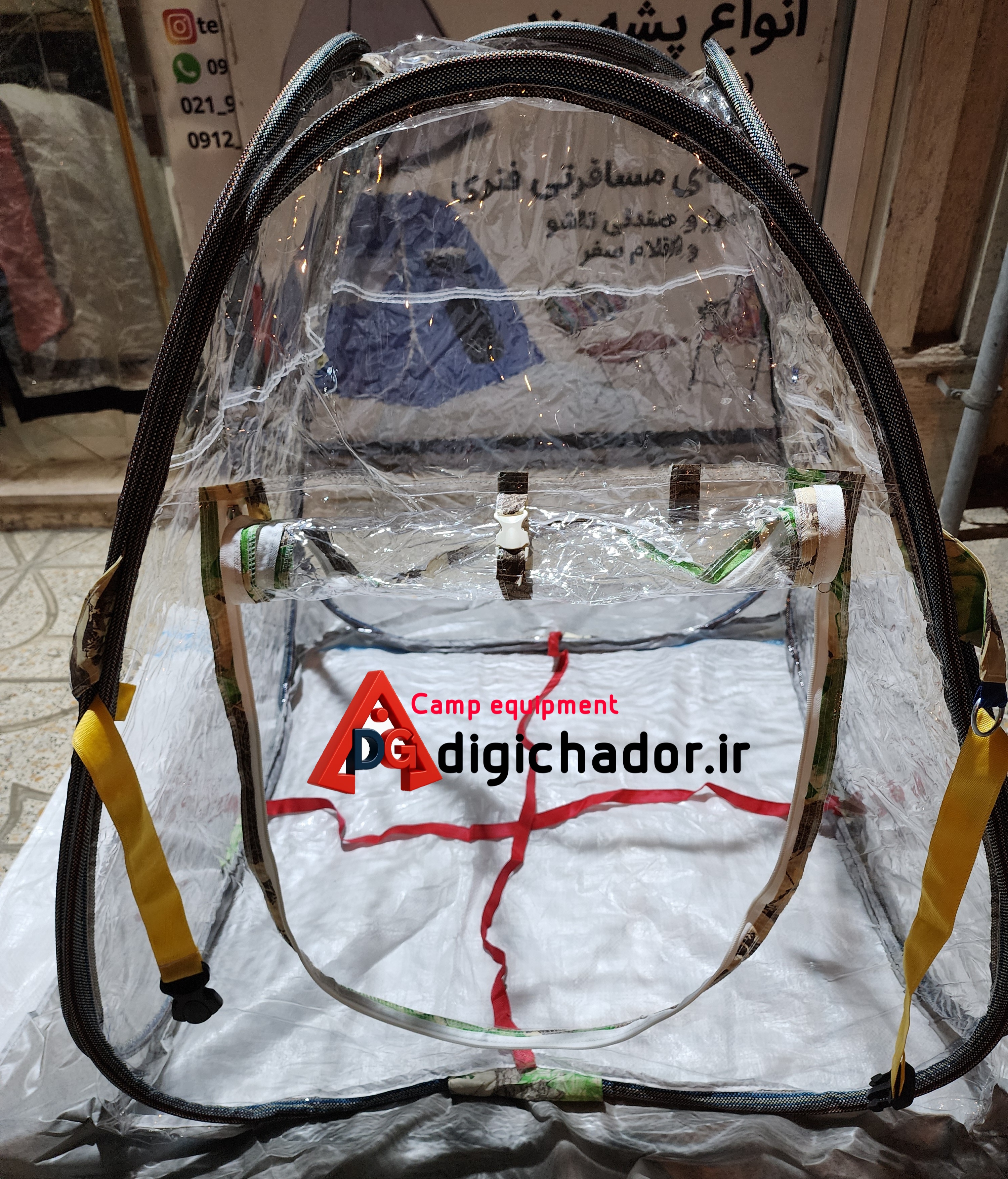 گلخانه به سبک دیجی چادر .محصولی خاص از تیم صنعتی دیجی چادر. چادر فنری شفاف طلقی pvc ضد آب و ضد گردوخاک و بردت و سرما. مناسب جهت استفاده برای گلخانه در شرایط هوای سرد . مناسب برای استفاده ی تیم فیلمبرداری و کارگردانی، مناسب برای استفاده جهت موارد خاص که نیاز به رویت و دیدن داخل و خارج چادر وجود دارد. نورگیر صدرصد . ضد آب با اسکلت فنری آسان تاشو . نایلون طلقی قوی مناسب برای استفاده جهت انواع مصارف در شرایط مختلف. مناسب جهت استفاده برای آلاچیق . مناسب جهت استفاده در ماهیگیری و طبیعت گردی هایی که نیاز به رویت اطراف وجود دارد و حتی چادر بازی کودک و یا خانه ی انواع پت و صدها استفاده مختلف از یک محصول خاص.این محصول از نایلون طلقی وارداتی درجه یک در ضخامت های ۱۵ و ۲۵ صدم و سایزهای کوچک و متوسط و بزرگ تولید میشود.