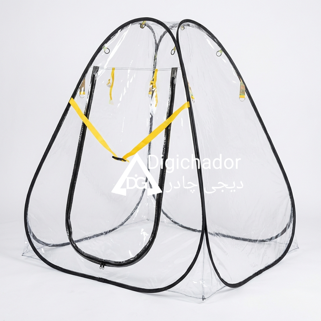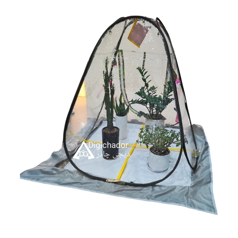گلخانه به سبک دیجی چادر .محصولی خاص از تیم صنعتی دیجی چادر.  چادر فنری شفاف طلقی pvc ضد آب و ضد گردوخاک و بردت و سرما. مناسب جهت استفاده برای گلخانه در شرایط هوای سرد . مناسب برای استفاده ی تیم فیلمبرداری و کارگردانی، مناسب برای استفاده جهت موارد خاص که نیاز به رویت و دیدن داخل و خارج چادر وجود دارد. نورگیر صدرصد . ضد آب با اسکلت فنری آسان تاشو . نایلون طلقی قوی مناسب برای استفاده جهت انواع مصارف در شرایط مختلف . مناسب جهت استفاده برای آلاچیق . مناسب جهت استفاده در ماهیگیری و طبیعت گردی هایی که نیاز به رویت اطراف وجود دارد و حتی چادر بازی کودک و یا خانه ی انواع پت و صدها استفاده مختلف از یک محصول خاص. این محصول از نایلون طلقی وارداتی درجه یک در ضخامت های ۱۵ و ۲۵ صدم و سایزهای کوچک و متوسط و بزرگ تولید می‌شود.